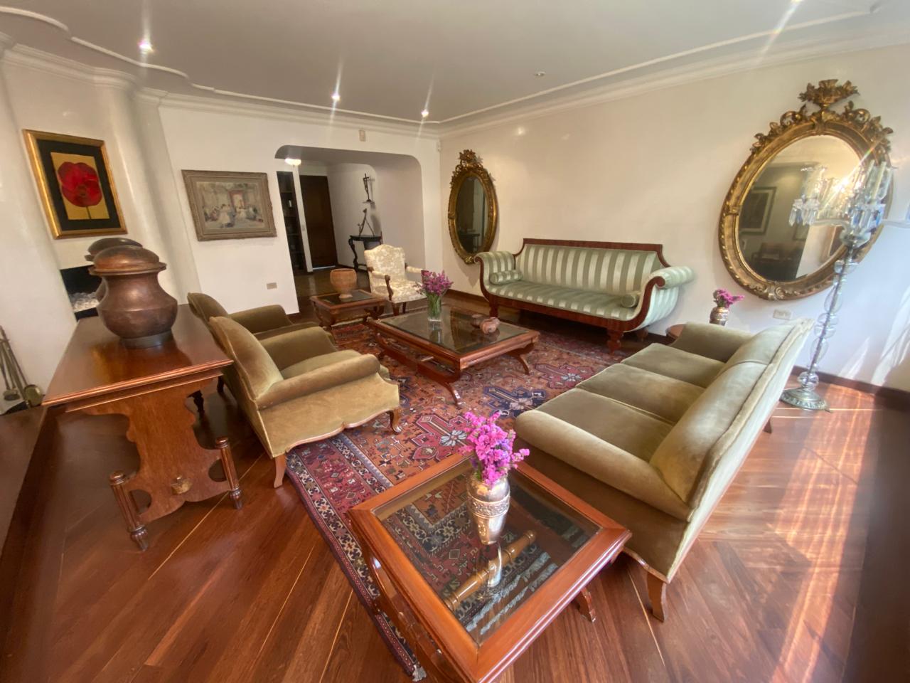 Apartamento amoblado en arriendo en Chicó, Bogotá, ubicado en un exclusivo y tranquilo sector de la ciudad. Este inmueble se destaca por sus amplios y elegantes espacios, con una sala principal independiente de estilo clásico, excelente iluminación natural y mobiliario de alta calidad. Cuenta además con una acogedora zona de estar o family room, ideal para el descanso o el entretenimiento. Las habitaciones cómodas y funcionales, con espacio para zona de trabajo, y la cocina es moderna, totalmente equipada y con excelentes espacios de almacenamiento. Una opción ideal para quienes buscan confort, estilo y una ubicación privilegiada cerca de parques, restaurantes y vías principales. LAZ-29548